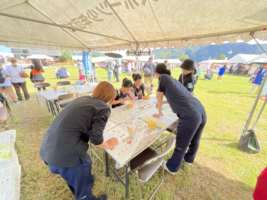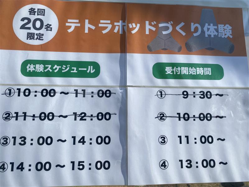私たち村上建設は、ミニテトラポッドの製作体験を行い、小さな子供たちや親御さんまでとても人気があり、受付には行列ができるほどでした☆